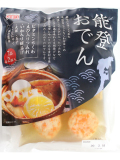 | 原材料 | 魚肉ねり製品(焼ちくわ、えび入りつみれ、いか入り絹揚げ)(かに・魚醤(魚介類)を含む)、ゆで卵、大根、こんにゃく、濃縮スープ(アミノ酸液調味料、砂糖、塩、その他)(小麦・大豆を含む)、昆布/調味料(アミノ酸等)、加工でん粉、炭酸Ca、水酸化Ca、着色料(カラメル、カルチノイド)、pH調整剤、V.E、V.A、香料 |
