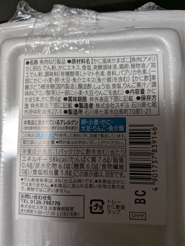 製造は七尾市の地元企業のスギヨでした。